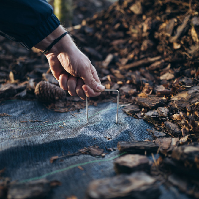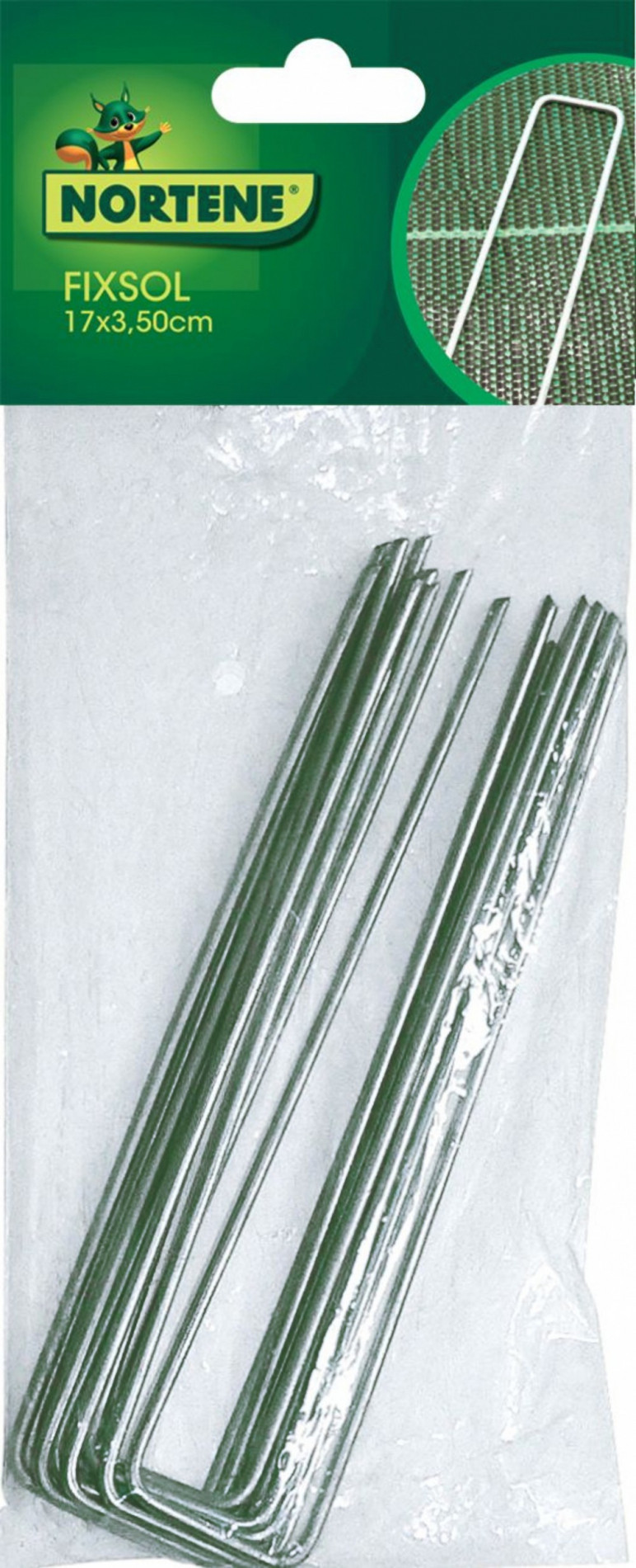 Piemērotas agroplēves, ģeotekstila, pretkurmju sietu stiprināšanai. Garums 17cm, platums 3.5cm.