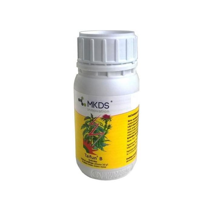 Vispārējs sistēmas iedarbības herbicīds daudzgadīgo un īsmūža nezāļu apkarošanai tīrumos pēc ražas novākšanas papuvēs, augļu dārzos, skuju koku jaunajos stādījumos un lauksaimniecībā izmantojamās platībās. Vispārējas sistēmas iedarbība nozīmē to, ka tiks iznīcināti visi augi, kuri tiks apsmidzināti. Iedarbības rezultāts īsmūža nezālēm parādās pēc 3-7 dienām, daudzgadīgajām pēc 14-21 dienas.Sakņu sistēmas pilnīga atmiršana notiek 20-25 dienās. Lai iegūtu maksimāli labus rezultātus nezāļu iznīcināšanā Emin Dārzam Taifun B izsmidzina nezāļu aktīvas augšanas periodā, kad tām ir labi attīstīta lapu virsma un kad tās ir sasniegušas 10-15cm garumu un tām ir vismaz 4-5 lapas, līdz nezāļu ziedēšanas sākumam. Darbīgā viela: glifosāts 360g/l. Paralēlās tirdzniecības atļauja NR.30. LIETOJIET AAL ATBILDĪGI! SAUDZĒJIET VIDI, SEVI, SAVUS TUVINIEKUS UN KAIMIŅUS!