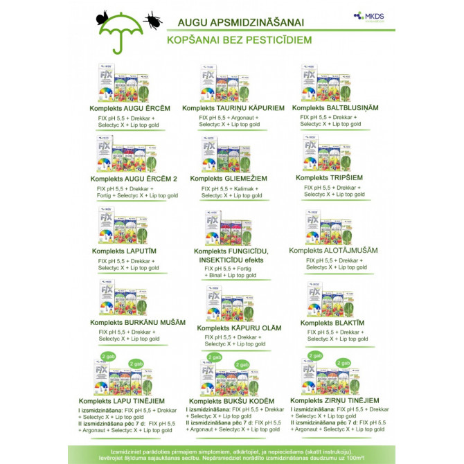 Ieteicams lietot kopā ar virsmas aktīvo vielu LIP TOP GOLD, kas uzlabo produkta uzsūkšanos un sadalījumu uz augu virsmas. Produkta efektivitāte nozīmīgi samazinās, ja šķīdums tiek pagatavots ar sārmainu ūdeni (pH > 7). Atbilstošu pH līmeni var nodrošināt ar FIX pH 5,5 stabilizatora palīdzību, kas nodrošina šķīduma optimālo skābuma līmeni un maksimālu aizsardzības efektu.
