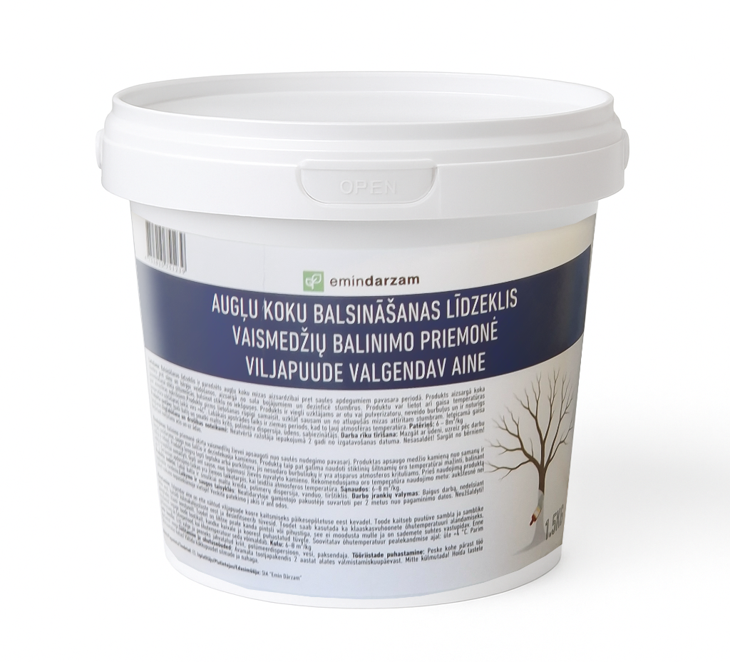 PIELIETOŠANA. Rudenī vai agri pavasarī koku miera periodā. Aizsargā augļu kokus un krūmus no apsūnojuma, sala bojājumiem, saules apdegumiem, grauzējiem. Neļauj ziemojošiem kukaiņiem nokļūt zem koka mizas. Pārklājums ir mitrumizturigs, elpojošs, nekaitīgs augļiem un dārzeņiem. Var balsināt siltumnīcu stiklus no iekšpuses, lai samazinātu gaisa temperatūru siltumnīcā. VIRSMAS SAGATAVOŠANA. Virsmai jābūt sausai, attīrītai no atmirušā mizas slāņa. UZKLĀŠANA. Pirms lietošanas sastāvu rūpīgi apmaisīt. Uznes vienā slānī. Ja nepiecešams sastāvu var atjaukt ar ūdeni līdz 5% no kopējā daudzuma. TRANSPORTĒŠANA UN UZGLABĀŠANA. Sastāvs ir ugunsdrošs. Uzglabāt un transportēt cieši aizvērtos, iepakojumos . UTILIZĀCIJA. Sauso sastāvu un iepakojumu utilizēt kā saimniecības atkritumus. UZMANĪBU! Sargāt no bērniem. Nepieļaut nokļūšanu acīs. Ja nokļūst acīs, nekavējoties tās skalot ar lielu daudzumu ūdens un meklēt medicīnisko palīdzību.
