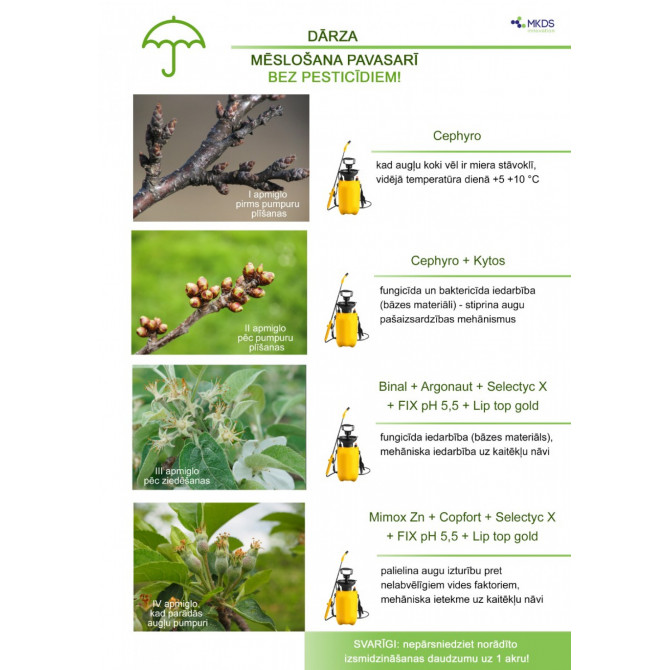 Cephyro ir gatavs lietošanai, un tā maksimālā efektivitāte tiek sasniegta, ja to izmanto jau preventīvā aizsardzībā. Sajauciet 20–30 ml koncentrāta uz 10 litriem tīra ūdens. Apstrādājiet augu lapas un stublājus, nodrošinot pārklājumu uz visas auga virsmas. Veikt apstrādi ik pēc 10–14 dienām, īpaši pēc nelabvēlīgu vides faktoru ietekmes, piemēram, lietus vai intensīvas saules gaismas.