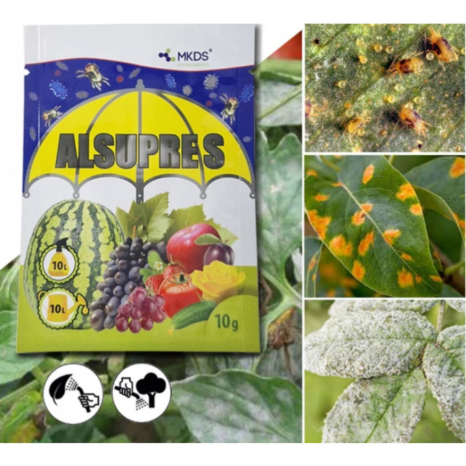 Alsupre S ir specializēts augu kopšanas līdzeklis, kas satur aktīvo sēru, nodrošinot efektīvu uzsūkšanos un biostimulāciju no augiem. Nerada augam apdegumus, pat lietojot lielā karstumā. Produkts veicina proteīnu sintēzi, pastiprina augu imunitāti un nodrošina aizsardzību pret kaitēkļiem, tostarp ērču (kāpuru un olu stadijās), kā arī pret sēnīšu slimībām — īsto miltrasu un daļēji arī neīsto miltrasu. Regulāra lietošana ievērojami uzlabo ražas kvalitāti un kultūraugu spēju izturēt stresu. Sērs oksidē organiskās vielas, it īpaši sporas, radot apstākļus uz lapu virsmas, kuros patogēnās sporas nevar saņemt pietiekamu mitrumu to attīstībai.