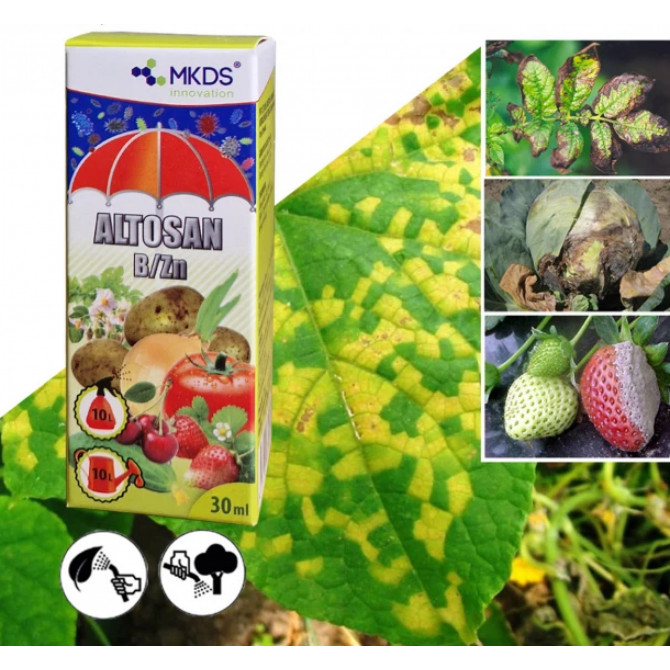 ALTOSAN ir dabīgs augu kopšanas līdzeklis, kura pamatā ir hitozāns, nodrošinot efektīvu irbinošu un profilaktisku augu aizsardzību. Produkts veicina fitoaleksīnu veidošanos, kas stiprina augu dabiskos aizsardzības mehānismus un aizsargā pret sēnīšu uzbrukumiem. Lai gan tas ir gatavs lietošanai, ALTOSAN darbojas kā preventīvs līdzeklis, kas neizraisa pieradumu un ir draudzīgs videi.