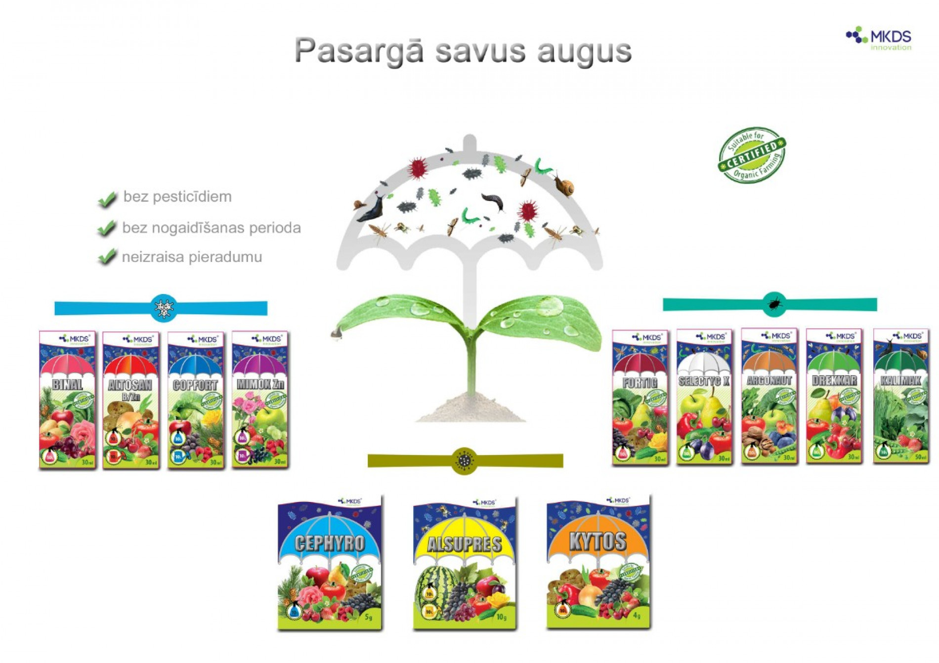 Lietošanas instrukcija: Produkts ir gatavs lietošanai, piemērots aizsardzībai uz jebkura auga virsmas. To ieteicams lietot preventīvi, koncentrācijā 20-30ml uz 10l ūdens, regulāri atkārtojot ik pēc 10-14 dienām, īpaši pēc nelabvēlīgu vides apstākļu iestāšanās.