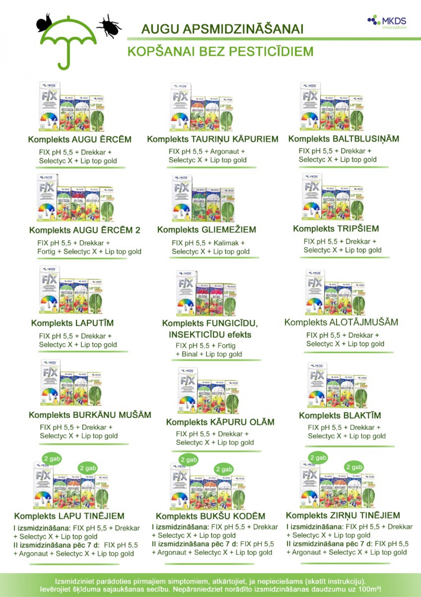 Ieteicams lietot kopā ar virsmas aktīvo vielu LIP TOP GOLD, kas uzlabo produkta uzsūkšanos un sadalījumu uz augu virsmas. Produkta efektivitāte nozīmīgi samazinās, ja šķīdums tiek pagatavots ar sārmainu ūdeni (pH > 7).
