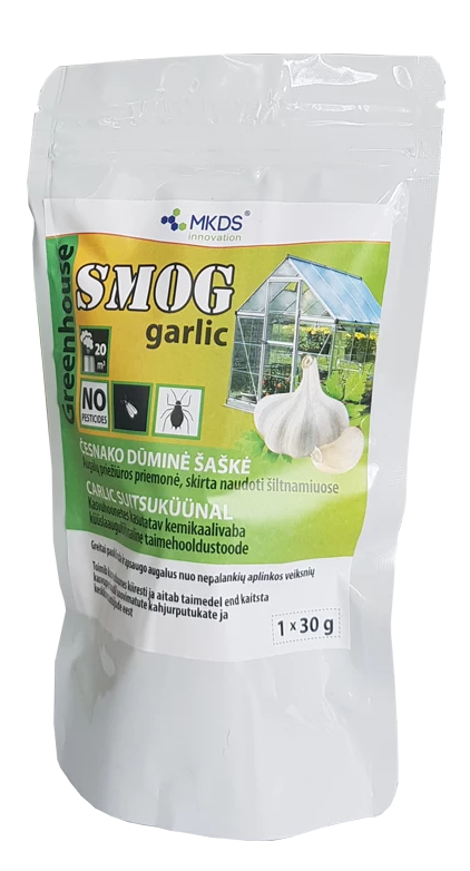 Augu kopšanas līdzeklis izmantošanai siltumnīcās. Sastāvs: kālija hlorāts, dabīgā ķiploku eļļa. Nesatur pesticīdus. Paredzēts 20m3 apstrādei. Ātri izplatās siltumnīcā un palīdz aizsargāt augus no nelabvēlīgas vides ietekmes. Lietošana: 1) Divas stundas pirms līdzekļa lietošanas nepieciešams augus aplaistīt. Apstrādes laikā augu lapām jābūt sausām, bez ūdens pilienu paliekām. Cieši aizveriet siltumnīcas durvis un logus. Apstrādi ieteicams veikt vakarpusē, kad gaisa temperatūra ir ap 16 grādiem pēc Celsija. 2) Novietojiet dūmu sveci siltumnīcas centrā uz termoizturīga paliktņa. Pārliecinieties, vai siltumnīcā nav mājdzīvnieku. 3) Aizdedziniet dūmu sveces degli un izejiet no siltumnīcas. Sveci aizdedzinot var rasties dzirksteles. 4)Atstājiet siltumnīcu aizvērtu vismaz uz 2 stundām, pēc tam siltumnīcu izvēdiniet!