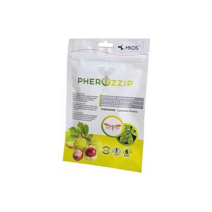 (Cameraria orhidella) Zirgkastaņu raibkodes pievilināšanai, noķeršanai un daudzuma noteikšanai. Feromonu iedarbība: Ievilina zirgkastaņu raibkodes tēviņus slazdos, mātītes netiek apaugļotas, samazinās kaitēkļu populācija. Feromoni ir nekaitīgi dzīvniekiem un putniem, nav toksiski videi. Izšķīlušies raibkodes kāpuri iegraužas lapu parenhīmā un starp dzīslām izgrauž alas - "mīnas". Galvenais problēmas izraisītājs - kāpuri, tie sākumā ir dzltenīgā vai dzeltenīgi brūnā krāsā, vēlāk kļūst brūnāki. Vienas raibkodes paaudzes kāpuru barošanas laikposms ilgst aptuveni 3-5 nedēļas. Ja kāpuri kastaņiem nodara bojājumu, to lapās vairs nerisinās fotosintēze un tās nodzeltē, kļūst brūnas, sažūst, līdz ar to tiek traucēta koka vielmaiņa un veģetācija. Kastani sliktāk ziemo, sākas sakņu izžūšana, pakāpeniski koki aiziet bojā. LIETOŠANA: Feromonu slazdus lieto visas sezonas garumā - no aprīļa līdz pat oktobrim, lai pasargātu kokus no kaitēkļu uzbrukuma arī nakamajā gadā. 1slazds/1kokam. Gada laikā attīstās 3paaudzes. Feromonu slazda darbības ilgums ir 4-6 nedēļas, pēc tam slazda efektivitāte samazinās. Iepakojumā ir feromons-pievilinātājs, izkāršanai izmantojiet TRĪSSTŪRVEIDA ĶERŠANAS SLAZDU DELTA vai VAIRĀKKĀRT LIETOJAMO SLAZDU vai arī izgatavojiet slazdu paši.