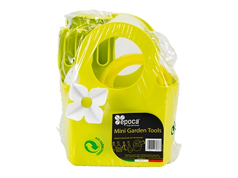 Komplektā iekļauta somiņa, grābeklītis, lejkanniņa, spica lāpstiņa, apaļa lāpstiņa un kaplītis.