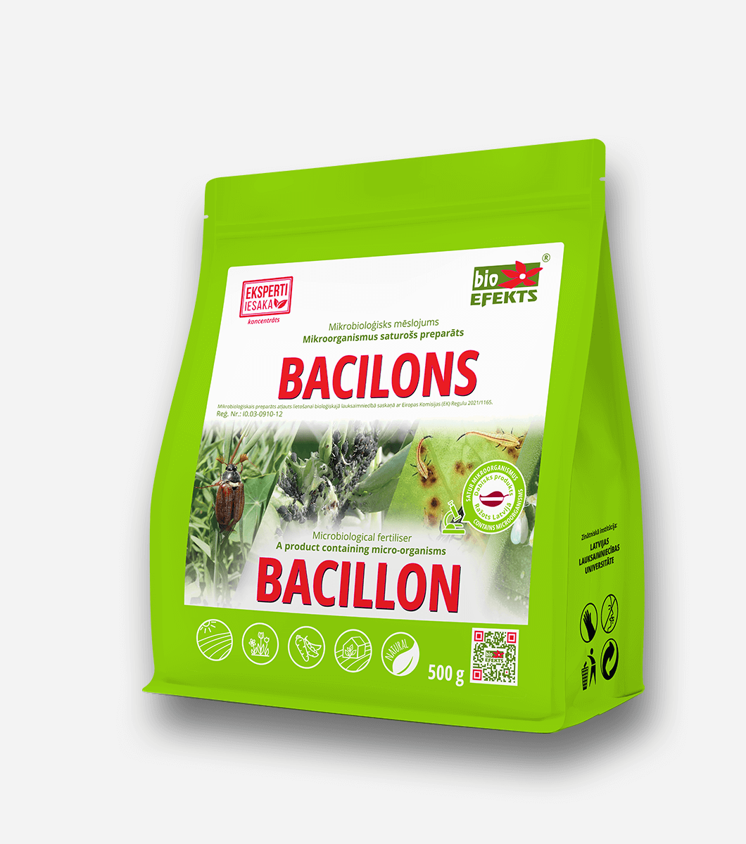 BACILONS palielina auga imunitāti, uzlabo augu augšanu un barības vielu pieejamību, sekmē sakņu sistēmas attīstību. Bacilons optimizē dzīvo organismu daudzveidību, stiprina augus kaitēkļu invāzijas laikā, pret to neveidojas rezistence. Preparātu pēc nepieciešamības vēlams lietot vairākas reizes sezonā. Mikrobioloģiskais preparāts ir piemērots dažādiem kultūraugiem un to var lietot visā veģetācijas laikā iekštelpās, siltumnīcās un arī atklātā laukā, nopērkams arī šķidrā formā. Īpaši plaši tiek pielietots bioloģiskajās saimniecībās. Nav kaitīgs cilvēkiem, dzīvniekiem, bitēm un citiem apputeksnētājiem.