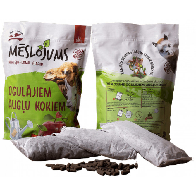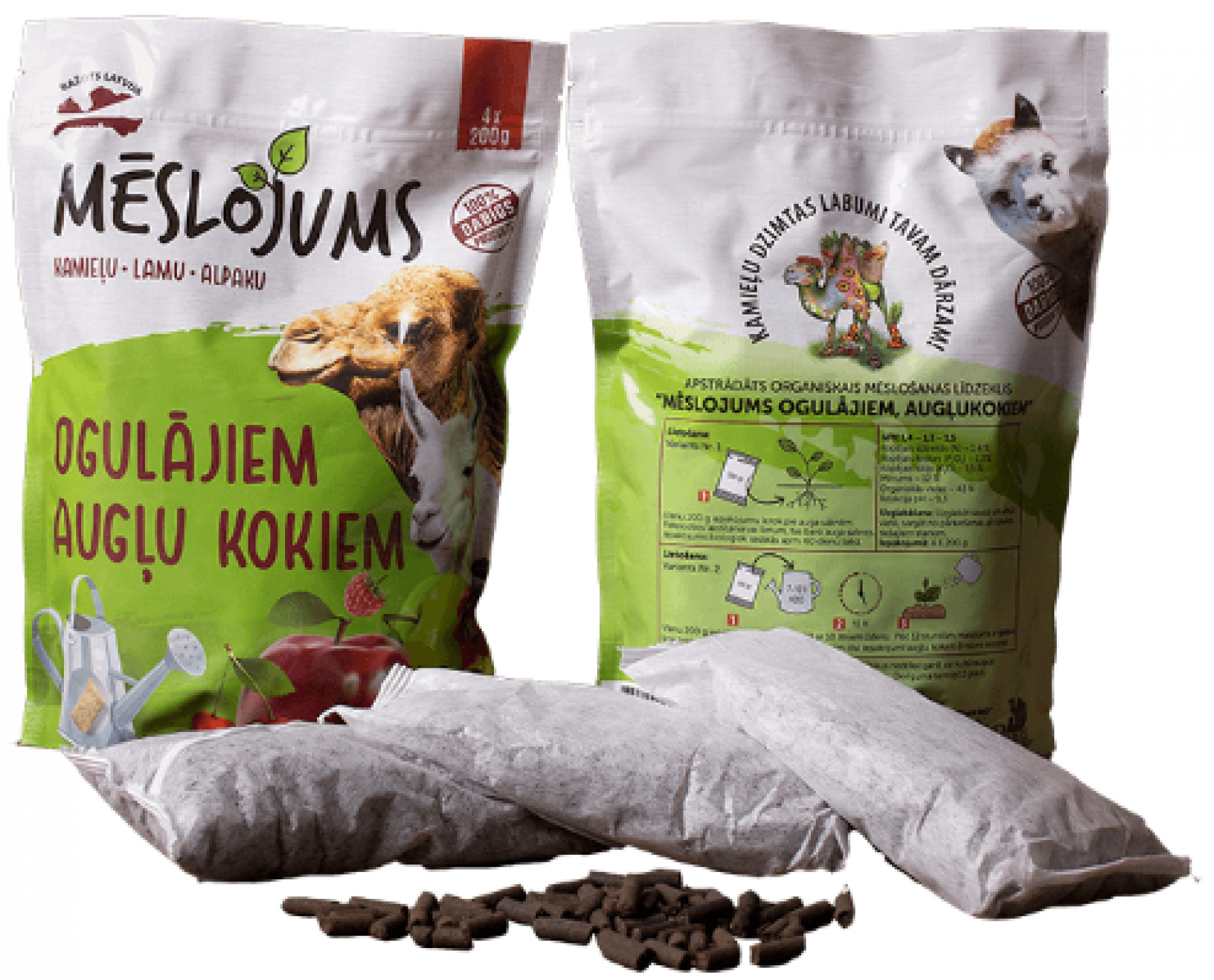 Mēslojums ogulājiem un augļu kokiem (Kamieļu, lamu un alpaku mēsli granulēti 800 gr)