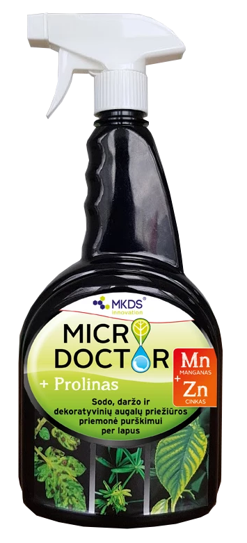 Microdoctor Mn/Zn – ar mikroelementiem piesātināts līdzeklis ar prolīnu, gatavs lietošanai – dārzeņiem, augļu kokiem, ogām un dekoratīvajiem augiem, mangāna un cinka deficīta gadījumā, atveseļošanai pēc stresa no nelabvēlīgiem laikapstākļiem, kaitēkļu pieplūduma, slimību izraisītājiem, pesticīdu negatīvās ietekmes. Ātrā palīdzība pēc pavasara salnām - Microdoctor Mn/Zn sastāvā esošais prolīns palīdz novājinātiem augiem atgūties pēc pavasara salnām. Cinkam ir tieša ietekme uz augu izmēru un nobriešanu, jo tas stimulē sēra, slāpekļa, fosfora un kālija uzņemšanu. Cinks ir ļoti svarīgs lapu un stublāju augšanai, palielina augu izturību pret sausumu, karstumu un aukstumu. Mangāns stimulē slāpekļa asimilāciju, sakņu attīstību, virszemes daļas augšanu un palielina izturību pret slimībām.