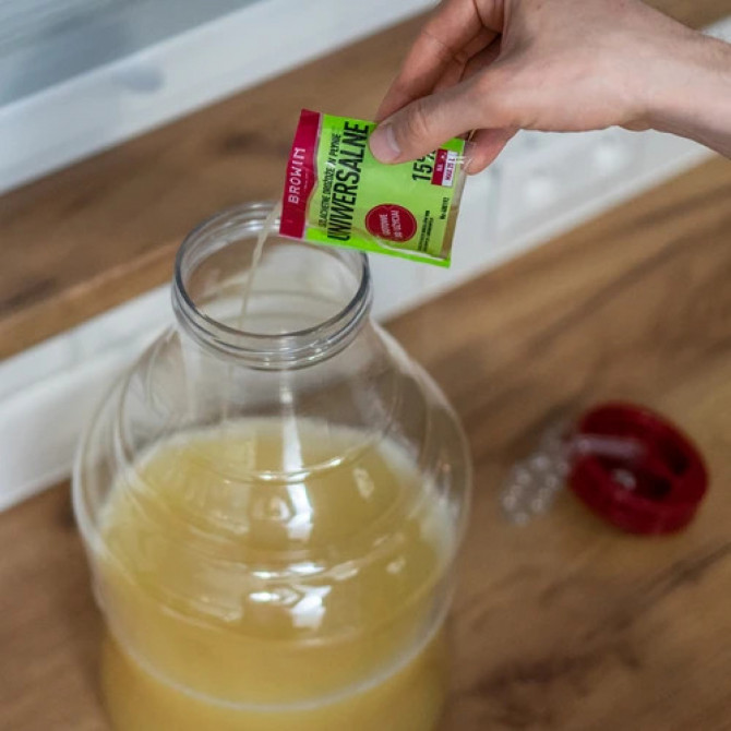 Piemērots visu veidu vīniem - UNIVERSAL šķidrais raugs ir piemērots balto un sarkano augļu vīnu, saldo un sauso vīnu raudzēšanai. Gatavs lietošanai - produkts ir ārkārtīgi viegli lietojams un neprasa iepriekšēju pavairošanu. Nav nepiecašams sagatavot tā saucamo rauga māti. Universal raugs nodrošina ātru un stabilu fermentāciju, kā arī pilnīgu cukura fermentēšanos. Šķidrais raugs ļaus pagatavot augstas kvalitātes mājās gatavotu un dzidru baltvīnu vai sarkanvīnu ar alkohola saturu līdz 15%. Viens 20ml iepakojums ļaus pagatavot līdz pat 25L Jūsu iecienītā mājas augļu vīna. Raugs ir paredzēts tiešai lietošanai, Jums nav jāgaida 48 stundas, lai tas pavairotos. Lietošana: pirms lietošanas sakratiet paciņu ar šķidrumu, lai produkts rūpīgi sajauktos, un pēc tam pievienojiet to traukā ar vīna temperatūru 20-25°C.
