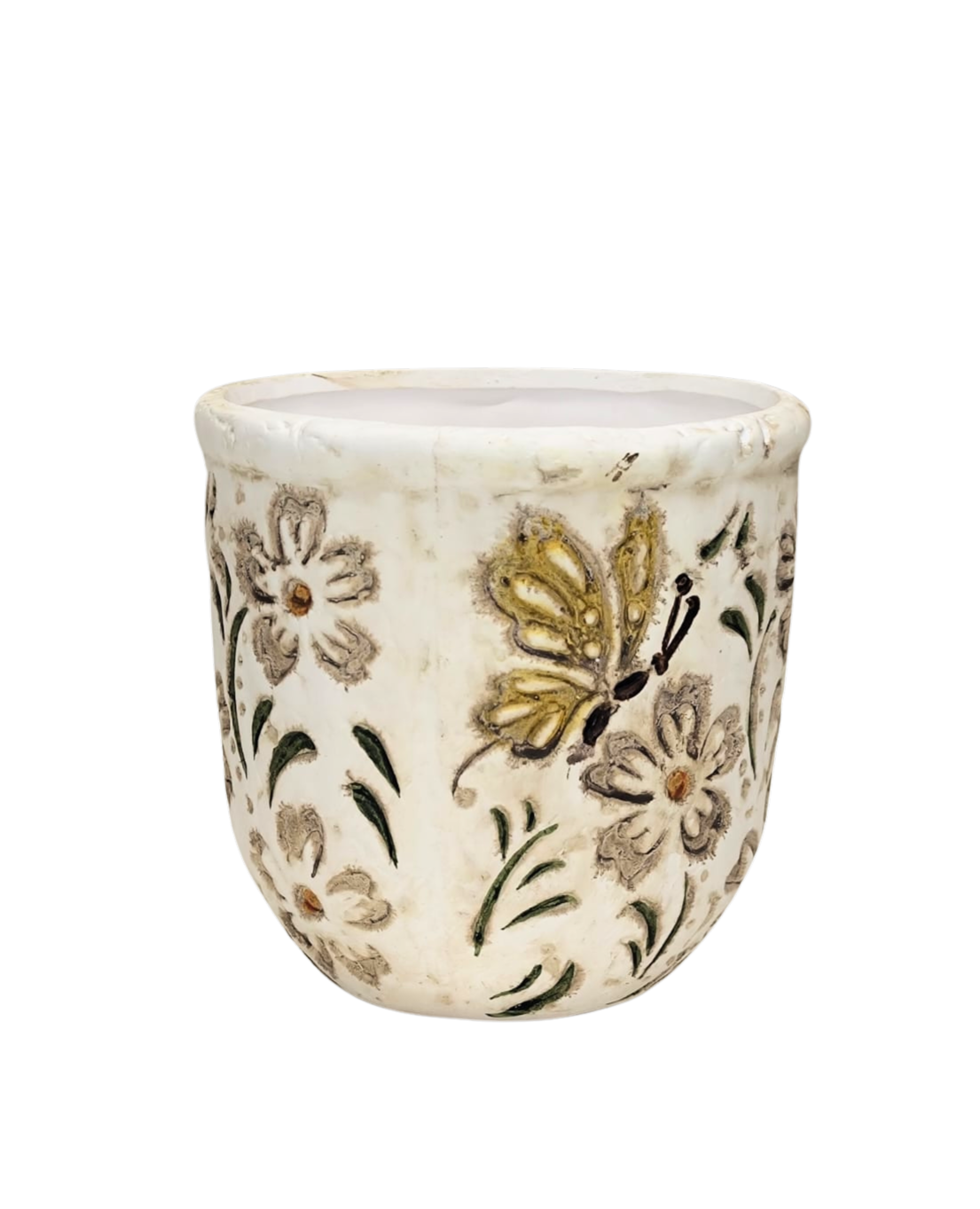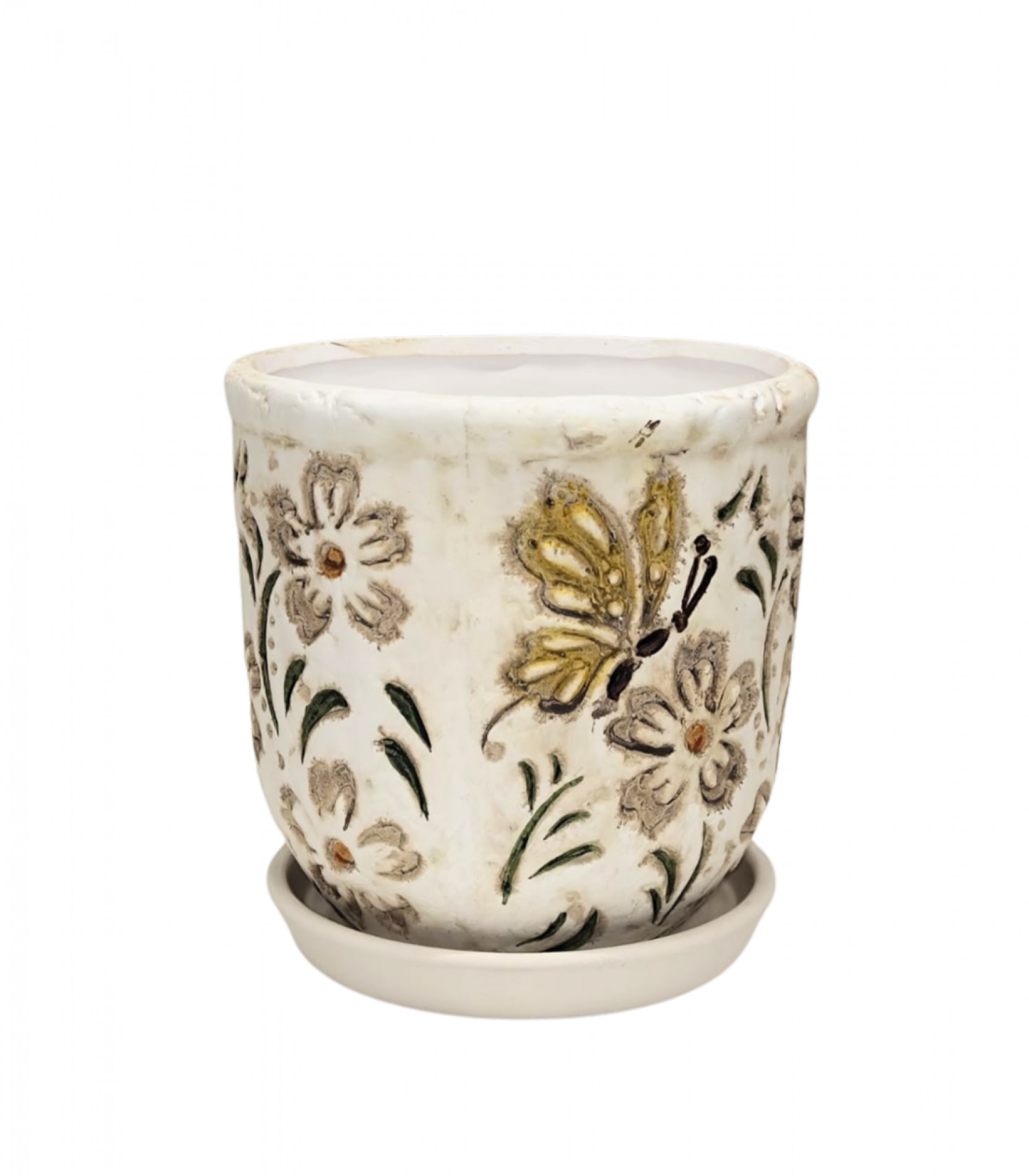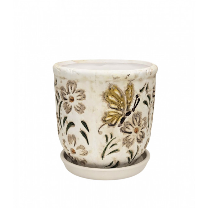 Puķu pods d11.5xh11cm ar krāsaniem ziediem ar paliktni