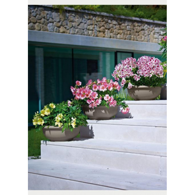 Puķu podi Ø 25 (cm.25 x 9 h.), 2.7L. Podi ražoti izmantojot polipropilēnu (PP). Tie ir izturīgi pret triecieniem. Piemēroti puķu audzēšanai gan telpās, gan ārā. Podu krāsa neizbalē, UV izturīgi. Atstājot ārā iztur līdz -20oC temperatūrai. Piemērots paliktnis Medea antracīta krāsā ar diametru 26cm. Ražots Itālijā.