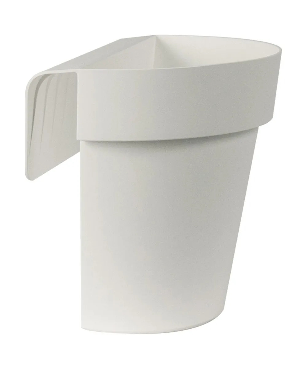 Ērts, viegls, triecienizturīgs plastmasas puķu pods uzkarināms uz balkona, lodžijas, trepju margu malas, nav nepieciešami āķi, kronšteini. Izmērs 25cm x 20cm x 23cm(h). UV izturīgi, atstājot ārā iztur līdz -20oC temperatūrai. Ražots: Itālijā