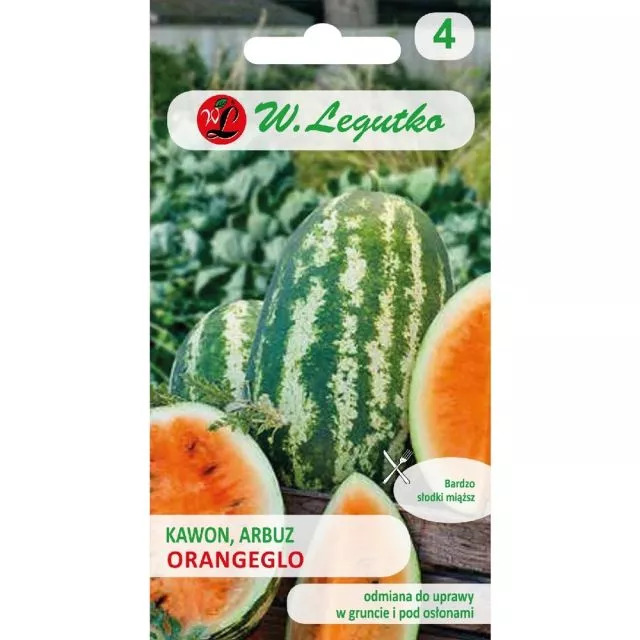 Ļoti oriģināla arbūzu šķirne, kurai augļa mīkstums ir oranžā krāsā, piemērota audzēšanai arī Latvijas dažādajos laika apstākļos. Piemērots audzēšanai gan plēves seguma siltumnīcās, gan atklātā laukā. Ražo augļus tumši zaļā krāsā ar gaišām svītrām, to svars ~5-7kg. Mīkstums ļoti sulīgs un salds ar nelielu sēklu daudzumu. Sēklas sēj aprīļa beigās podiņos, pie temperatūras 22-24º.C sadīgst 2 nedēļās. Stādus ar 4-5 lapiņām izstāda maija otrajā pusē, 0.6x0.6m attālumā. Vēlams bagātīgi mēslotā augsnē vai tīrā kompostā. Audzē saulainā, no vējiem pasargātā vietā, auglīgā un pietiekami mitrā augsnē. Ražu vāc no augusta līdz septembrim. Nobriedušam auglim pieklauvējot ir dobjš troksnis. Ražots: Polijā.