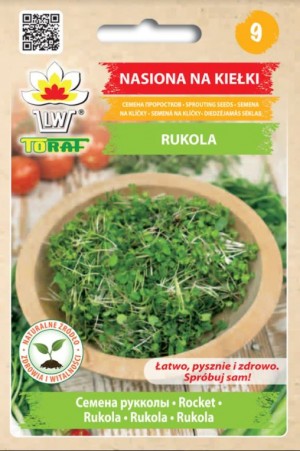 Dīgsti ar patīkamu garšu. Bagātīgs olbaltumvielu, šķiedrvielu, omega-3 taukskābju un enzīmu avots, lieliski organismu papildina ar vērtīgiem vitamīniem- A,C, F, B, minerāliem, aminoskābēm un mikroelementiem Zn, P, Mn, Cu, K, S, Ca, Fe. Rukolas dīgsti veicina gremošanu, organisma attīrīšanos un detoksikāciju, stiprina imūnsistēmu, uzlabo asinsriti nostiprina nervu sistēmu. Antikancerogēna iedarbība. Sniedz enerģiju. Var arī karsēt. Izmanto sviestmaizēm, makaronu ēdieniem, salātiem, sieriem, mērcēm, piedevu zupām.