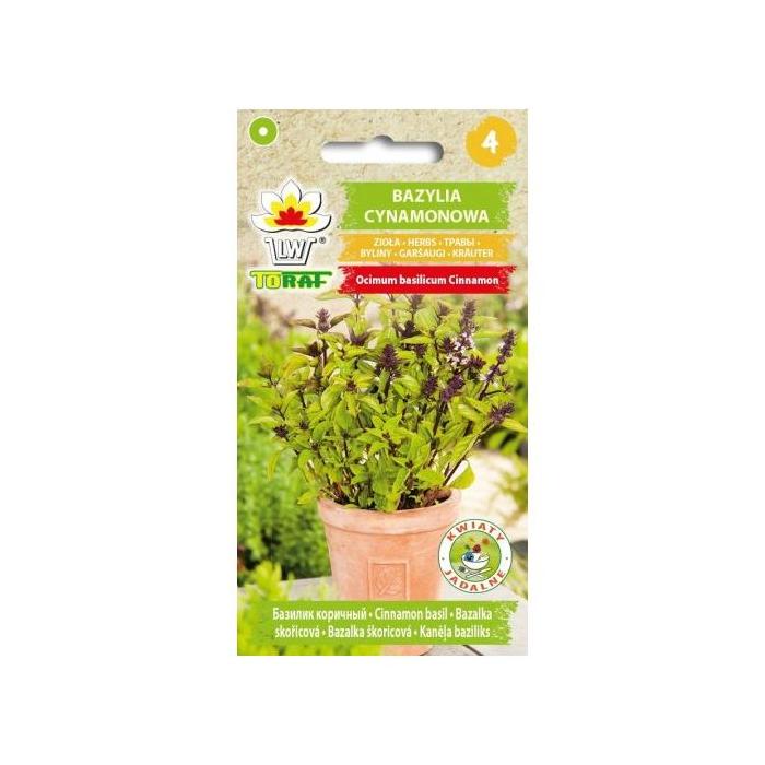 (Ocimum basilicum Cinnamon) Pievilcīgs augs ar violetas krāsas kātiem, mazām līdz vidēja izmēra olīvzaļām lapām, ar izteiktu kanēļa aromātu un saldu pikantu garšu. Lieliski sader ar dažādiem Āzijas virtuvju ēdieniem, kā pamats mērcēm, kuras pasniedz ar augļu salātiem, un dažādos karstajos dzērienos, izmanto pat tējas pagatavošanai. Piemērots audzēšanai arī telpās vasaras garumā. Ziedēšanu aizkavē, galotņojot dzinumus. Izmanto svaigā, saldētā, žāvētā veidā. Sēj sekli III-V, optimālā sēklu dīgšanas temperatūra ir 25 - 28 grādi, sēklas sadīgst 3 - 5 dienās