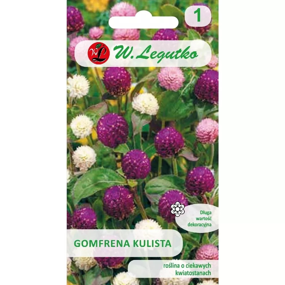 Viengadīgs augs, augstums ~25-40cm. Veido krāsainas sfēriskas ziedkopas. Sēj martā, aprīlī dēstu kastītēs, izstāda pēc pavasara salnām. Audzēšanas attālums 30x30cm. Zied no jūlija līdz rudens salnām. Piemērotas dārzu apstādījumos, griezto ziedu ieguvei, sevišķi sauso ziedu kompozīcijās. Ražots: Polijā
