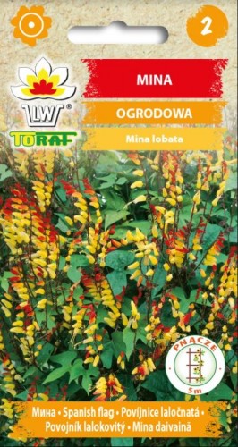(Mina lobata) Saukta arī par spāņu karogu. Ļoti dekoratīvs viengadīgs vīteņaugs, kurš sasniedz 3-5 m garumu. Ziedi veidojas garenās skarās, zied interesanti- vispirms veidojas sarkans zieds,tad iekrāsojas dzeltenā krāsā. Ieteicams žogu, balkonu, lapeņu apzaļumošanai. Sēj III,IV dēstu kastītēs, izstāda pēc salnām. Zied VII-rudens salnām. Audzē saulainās vietās, barības vielām bagātā augsnē.
