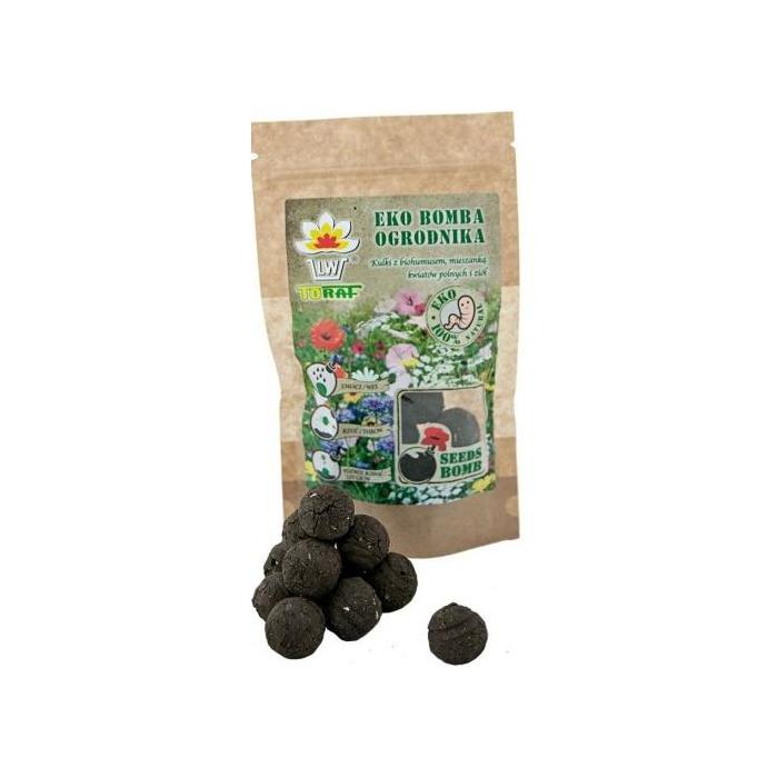 Paciņā 8 sēklu bumbiņas, diametrs 24-26mm. Ilgi ziedošs viengadīgo, daudzgadīgo puķu un garšaugu sēklu maisījums. Sēklas iestrādātas 24mm bumbās, kuras veidotas no substrāta un māla. Lietošana: Izvēlieties piemērotu vietu dārzā, kur audzēsiet puķes. Nedaudz samitriniet bumbiņas virsmu ar ūdeni un ielieciet dārza augsnē. Sēklu bumbiņas mitruma ietekmē sadalās-sākas sēklu dīgšana un sakņu attīstība. Sēklu bumbiņas var izsēt no aprīļa līdz jūnijam vai no augusta līdz oktobrim.