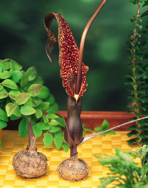 Sauromatum venosum ziemā ir miera stāvoklī un aug no gumiem. Gumi darbojas kā barības vielu un cietes rezervju krātuve, kas augam nepieciešamas gan ziedēšanai, gan lapu audzēšanai. Augšana sāksies pavasarī. Ja gumi ir pietiekami lieli, tas uzziedēs pirms lapu vai sakņu izdzīšanas. Līdz ar to ir iespējams vienkārši nosēdināt gumus uz palodzes bez podiņa vai augsnes un vērot, kā tas veido savu ievērojamo ziedkopu. Ziedkopa ir liela un iespaidīga. Garais lāpstiņš var būt 30 cm garš, un dramatiski iekrāsotais lāpstiņš salokās atpakaļ, atklājot pārsteidzošu sarkanu un dzeltenu rakstu.