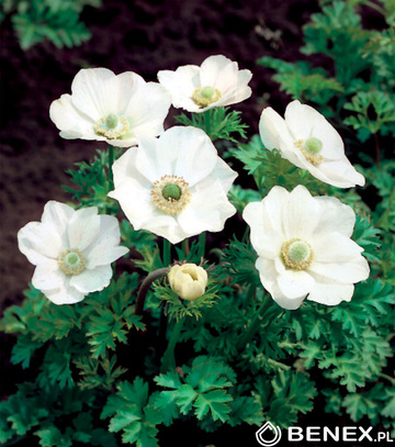 Anemones vienkāršās "Bride" (Anemone coronaria) Ziedi ar zaļu actiņu. 30-40cm augstas. Piemērotas audzēšanai pilnā saulē. Smaržo. Ziedēšanas laikā (IV-VII) piesaista tauriņus, bites...Ziedi piemēroti grieztajiem ziediem. Pēc nogriešanas -2nedēļas labi uglabājas vāzē...