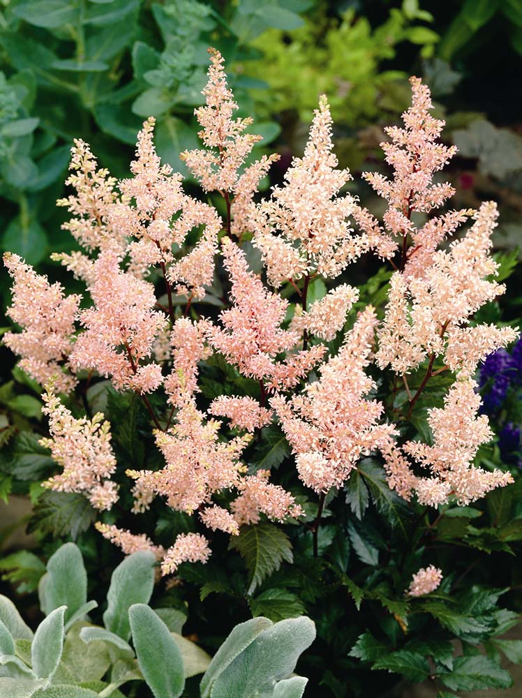 Astilbe x rosea ’Peach Blossom’ Tautas valodā astilbes sauc arī par dārza vīgriezēm.Augi līdz 60cm augsti. lapas spīdīgas. Ziedi persiku rozā tonī, sakopoti nelielās ziedkopās. Zied no jūnija beigām. Labi aug no pusdienas saules aizsargātas vietās ar augstu gruntsūdens līmeni. Patīk mitra, ar organisko mēslojumu bagāta augsne. Ziemcietīgas, tām nekaitē pat kailsals, vienīgi pavasara vēlajās salnās var pamatīgi ciest to jaunais lapojums. Pavasara salnu dēļ, vajadzētu izvēlēties no vējiem aizsargātas vietas.