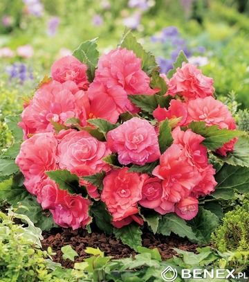 Begonijas Non Stop Begonia x tuberhybrida Zema 25-35cm kompakta kamolbegonija. Labi veidotu sazarotu augumu, lieliem 7.5-10cm ziediem. Noturīga ziedu krāsa. Vidēji agrs ziedēšanas periods. Piemērots audzēšanai podos, dobēs,balkona kastēs konteineros. Neēd gliemeži. Begonijas nedaudz siltākās telpās nes jau februāra vidū un sāk nedaudz smidzināt gumus ar ūdeni, martā jau stāda podos. Gan ilgziedu begoniju jeb leduspuķu, gan kamolbegoniju dēstu audzēšanai (sēšanai, piķēšanai) nepieciešams ļoti viegls, irdens substrāts ar viegli skābu reakciju (pH 5,6 - 6). Vēlāk, kad dēsti paaugušies, kad augi jau zied vai ir ieriesušies ziedpumpuri, vēlams audzēt begonijām paredzētā kūdras substrātā (pH 5,8).