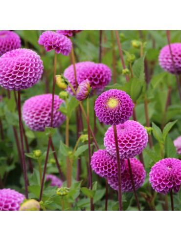 Pomponziedu dālijas. Augi 70-80cm augsti. Ziedkopas līdzīgas lodveida dālijām ar vēl izteiktāku sfērisku formu, bet mazāka izmēra – to izmērs mazāks par 52 mm. Pomponu mēlziedi saritināti caurulītē visā to garumā.. Visizturīgākās dālijas. Martā, aprīlī dāliju gumus var iestādīt puķu podā. Labākais dāliju stādīšanas laiks ir maija beigas – jūnija sākums, kad mazinās vēlīno salnu bīstamība un zeme ir pietiekoši sasilusi. Sagatavotajā dobītē ievieto gumu ar pumpuru vai ar uzdīgušu asnu. Gumu apber ar zemi, 2 – 3 cm virs sakņu kakliņa. Saaugušos bumbuļus vai stādus no podiņiem izstāda kopā ar zemes piku. Gumam, kuram nav vēl asniņu, tie parādās parasti vēlāk kā pēc 10 dienām, tomēr labāk stādīt tikai tos gumus ar skaidri manāmiem asniņiem Pirms salnām apsedziet stādijumu ar , piemēarm, agroplēvi. Dālijas vislabāk audzējamas saulainā, gaišā, no stipriem vējiem aizsargātā vietā, pacieš arī daļēju noēnojumu. Patīk trūdvielām bagāta, irdena, dziļi sastrādāta un pietiekami mitra, bet ne slapja augsne.