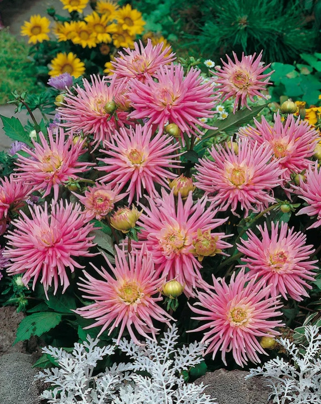 Kaktusziedu dālijas zemās. Piemērotas stādīšanai puķu podos, balkona kastēs, dobju apmalēs. Ziedkopas pilnīgi pildītas. Mēlziedi parasti ir asi, šauri un ar ieritinātām uz leju malām vairāk par pusi no to garuma. Martā, aprīlī dāliju gumus var iestādīt puķu podā. Labākais dāliju stādīšanas laiks ir maija beigas – jūnija sākums, kad mazinās vēlīno salnu bīstamība un zeme ir pietiekoši sasilusi. Sagatavotajā dobītē ievieto gumu ar pumpuru vai ar uzdīgušu asnu. Gumu apber ar zemi, 2 – 3 cm virs sakņu kakliņa. Saaugušos bumbuļus vai stādus no podiņiem izstāda kopā ar zemes piku. Gumam, kuram nav vēl asniņu, tie parādās parasti vēlāk kā pēc 10 dienām, tomēr labāk stādīt tikai tos gumus ar skaidri manāmiem asniņiem Pirms salnām apsedziet stādijumu ar , piemēarm, agroplēvi. Dālijas vislabāk audzējamas saulainā, gaišā, no stipriem vējiem aizsargātā vietā, pacieš arī daļēju noēnojumu. Patīk trūdvielām bagāta, irdena, dziļi sastrādāta un pietiekami mitra, bet ne slapja augsne.