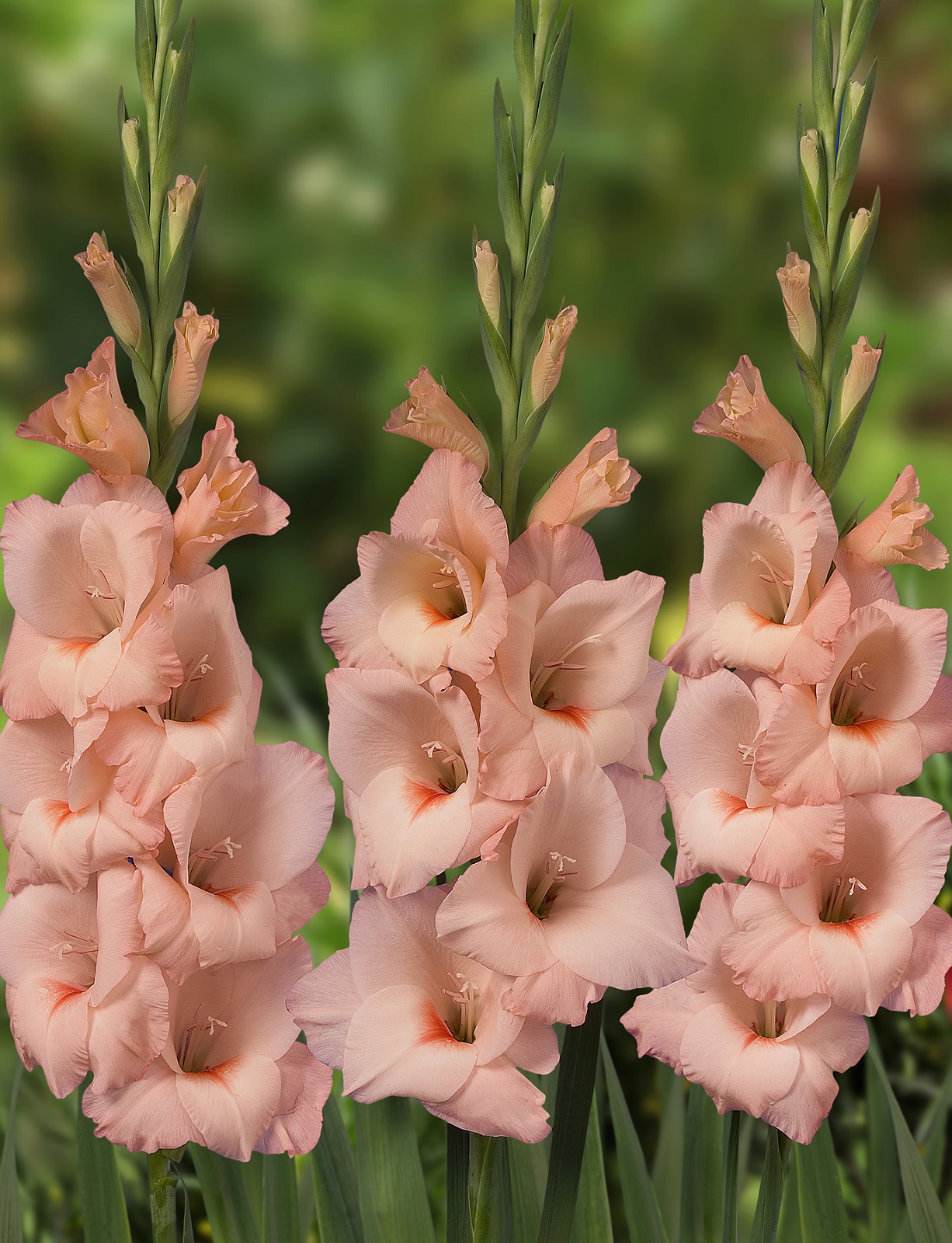 Gladiolas 100-120cm augstas. Gladiolas iesaka stādīt IV beigās, V sākumā, kad augsne ir iesilusi līdz +9oC. Neiesaka pārak agri stādīt gladiolu bumbuļsīpolus, jo aukstā augsnē iestadītu bumbuļsīpolu attīstība aizkavējas. Siltā laikā pat 2 nedēļas vēlāk iestādītas gladiolas uzdīgst ātrāk un attīstība notiek straujāk. Vēlajiem stādījumiem svarīgs ir  augsnes nodrošinājums ar mitrumu. Ja mitruma pietiek līdz gladiolai izveidojas 3. lapa,tas ir, laikā kad sāk veidoties 2.pakāpes saknes, tad sausums vairs sekas neradīs. Gladiolas stādīt vajadzētu ziemeļu-dienvidu virzienā orientētās vienrindu vai divrindu slejās,kas izvietotas 70 cm viena no otras. Atklātā, valdošiem vējiem pakļautā laukā gladiolas, lai tās ziedēšanas laikā neizgāstos, jāstada padziļināti- 15 cm un dziļāk (atkarībā no augsnes struktūras)