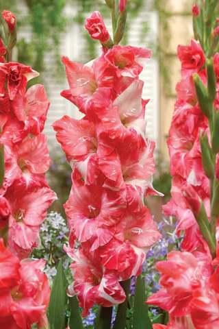 Gladiolas 100-120cm augstas. Gladiolas iesaka stādīt IV beigās, V sākumā, kad augsne ir iesilusi līdz +9oC. Neiesaka pārak agri stādīt gladiolu bumbuļsīpolus, jo aukstā augsnē iestadītu bumbuļsīpolu attīstība aizkavējas. Siltā laikā pat 2 nedēļas vēlāk iestādītas gladiolas uzdīgst ātrāk un attīstība notiek straujāk. Vēlajiem stādījumiem svarīgs ir  augsnes nodrošinājums ar mitrumu. Ja mitruma pietiek līdz gladiolai izveidojas 3. lapa,tas ir, laikā kad sāk veidoties 2.pakāpes saknes, tad sausums vairs sekas neradīs. Gladiolas stādīt vajadzētu ziemeļu-dienvidu virzienā orientētās vienrindu vai divrindu slejās,kas izvietotas 70 cm viena no otras. Atklātā, valdošiem vējiem pakļautā laukā gladiolas, lai tās ziedēšanas laikā neizgāstos, jāstada padziļināti- 15 cm un dziļāk (atkarībā no augsnes struktūras)