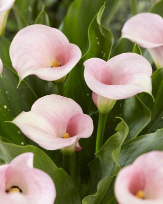 Zantedešija / dižkalla (Zantedeschia ) .  Ārumu (Araceae) dzimtas augs, kam sakneni veido gums un ir lielas (līdz 45 cm) sirds-/bultveida lapas, kas dažām šķirnēm var būt ar „caurumiem” un skaistiem kallām tipiskiem „ziediem”.  Īpatnēja ir dižkallas īpašība uz papu smailajiem galiņiem veidot ūdens lāses, par ko mēdz teikt, ka tās vēsta par laika maiņu Audzē augsnē ar augsnes skābumu pH 5,5-6. Augšanas periodā zantedešija jālaista bagātīgi (nepārlaistī!!!!) ar viegli skābu ūdeni, miera periodā pa retam, lai pilnībā neizkalst. Arī pēc noziedēšanas kādu laiku dižkallu turpina laistīt un mēslot.