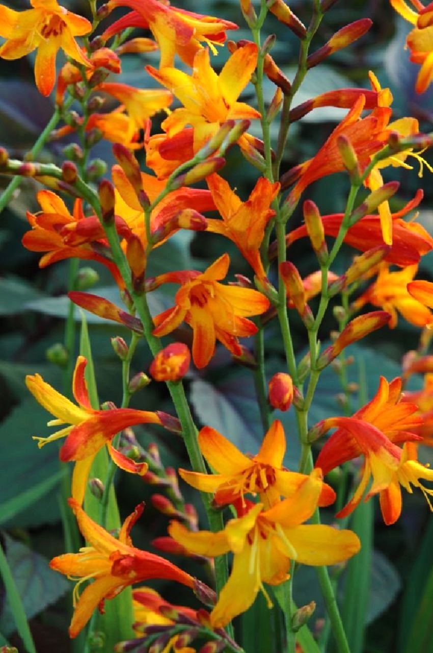 Dārza montbrēcija (Crocosmia x crocosmiiflora) jeb krokosmija. Auga 60-90cm garās, gaiši zaļās lapas pēc izskata līdzīgas gladiolām un acidantērām. Ziednesis ir līdz 90 cm augsts, apmēram 40 – 50 cm no tā aizņem skraja ziedvārpa. Sarkanīgi oarnžie ar dzeltenu vidiņu ziediņi atplaukst pakāpeniski no vārpas apakšas uz augšu, vienlaikus ir atvērušies 4 – 8 ziedi. Dārzā zied no jūlija līdz septembrim. Krokosmijas jeb montbrēcijas izmanto ziedu griešanai – tie ilgi saglabājas, vāzē izzied pilnīgi. Apstādījumos šie augi veido spilgtus, ilgstoši ziedošus laukumus. Krokosmijas ir prasīgas pēc gaismas, audzējamas atklātās, saulainās vietās, irdenās, auglīgās augsnēs, kurās ir pietiekami daudz mitruma. Pie mums tās nav pietiekami ziemcietīgas, tāpēc pirms sala iestāšanās (oktobra sākumā) jāizrok. Bumbuļsīpoliem nogriež lakstus, nedaudz apžāvē, pēc tam glabā +2...+5 oC temperatūrā sausās smiltīs vai kūdrā. Laukā stāda aprīļa beigās līdz 10 cm dziļi. Tie bagātīgi veido sīkus vairsīpoliņus, ko izmanto pavairošanai. Krokosmiju vairsīpoliņi parasti sāk ziedēt otrajā audzēšanas gadā.