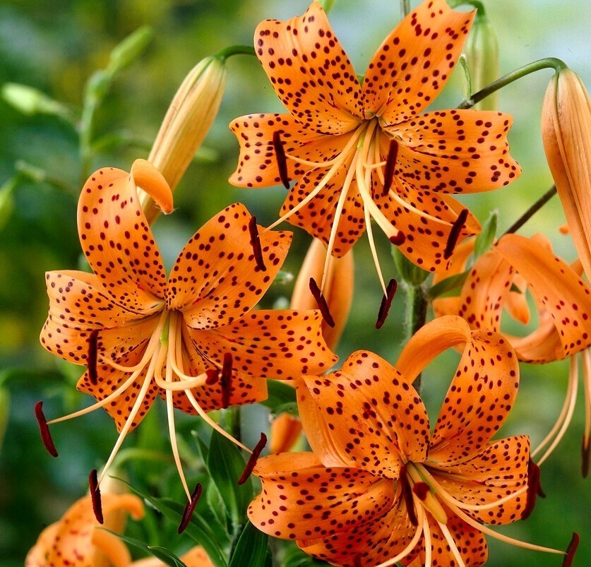 Tīģerlilijas (Lilium tigrinum var. splendens) Vienas no pateicīgākajiem un pieticīgākajiem dārza augiem. Ziedi ar efektīgiem, tumšiem punktiņiem, saldi smaržo. Ziedi ilgstoši stāv vāzē.