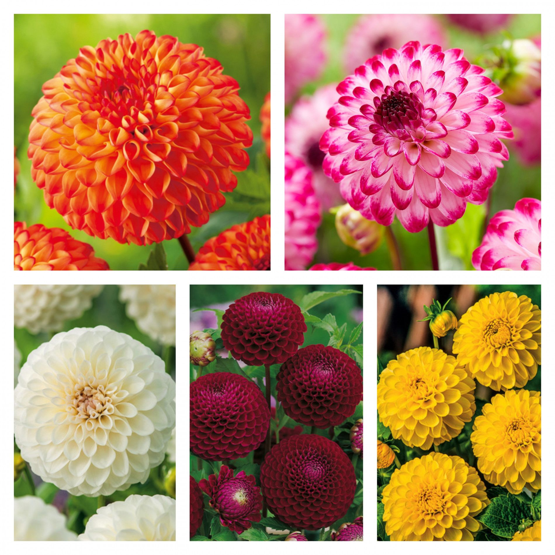 Izlasē ietilpst:Dālijas Boom Boom White - augstums 80-90cmDālijas Little Robert - augstums 80cmDālijas Mirella - augstums 80-90cmDālijas Downham Royal - augstums 100-110cmDālijas Potgieter - augstums 70-80cm