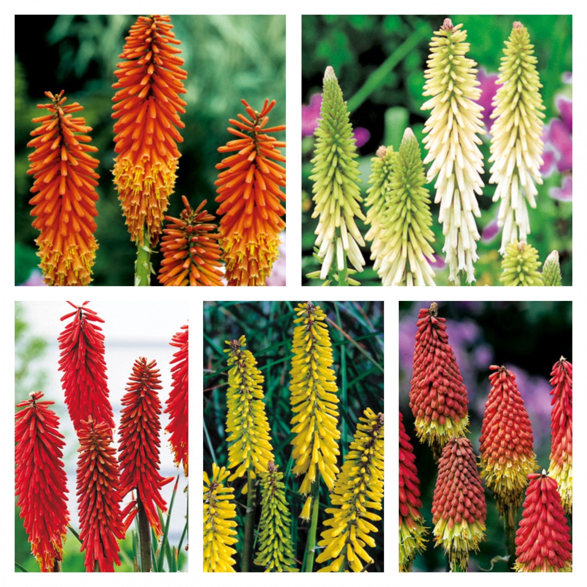 Izlasē ietilpst:Knifofija oranža - augstums 80-100cmKnifofija balta - augstums 80-100cmKnifofija Nancy red - augstums 60-80cmKnifofija Minister Verschuur - augstums 80-100cmKnifofija sarkandzeltena - augstums 80-100cm