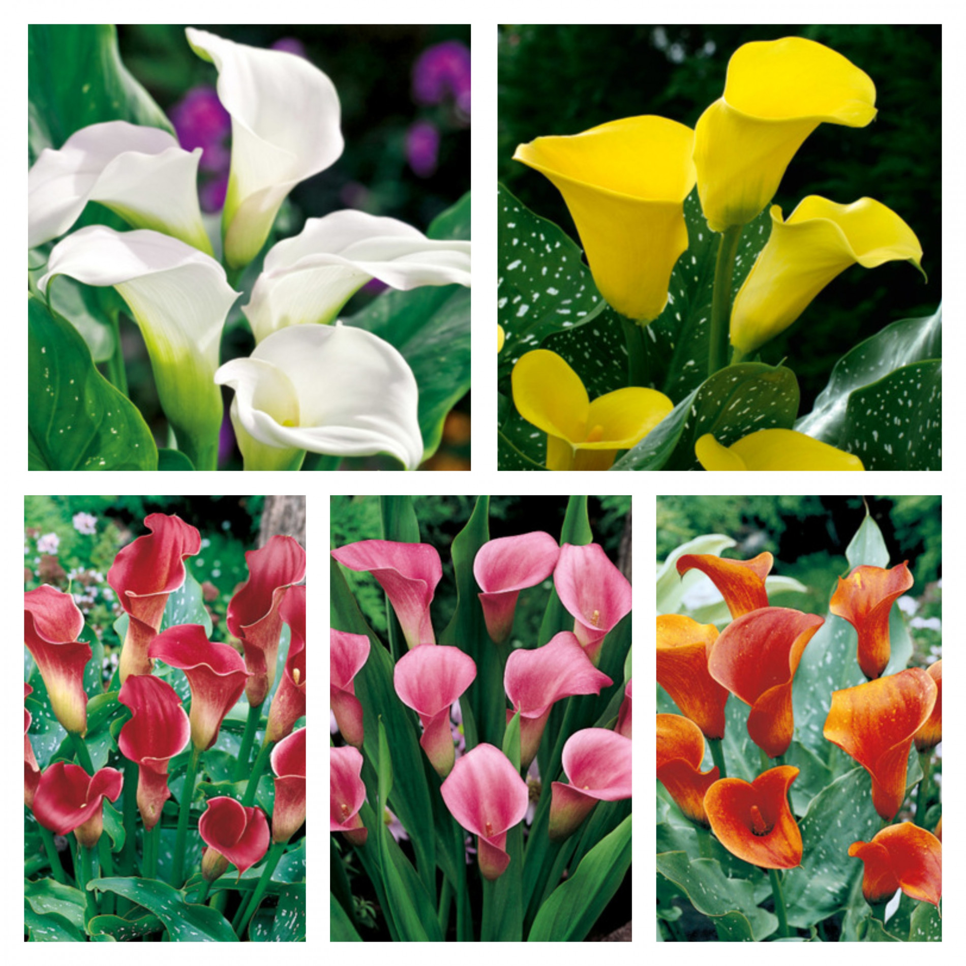 Izlasē ietilpst:Kallas sarkanas - augstums 40-60cmKallas baltas - augstums 40-60cmKallas rozā - augstums 40-60cmKallas oranžas - augstums 40-60cmKallas dzeltenas - augstums 40-60cm